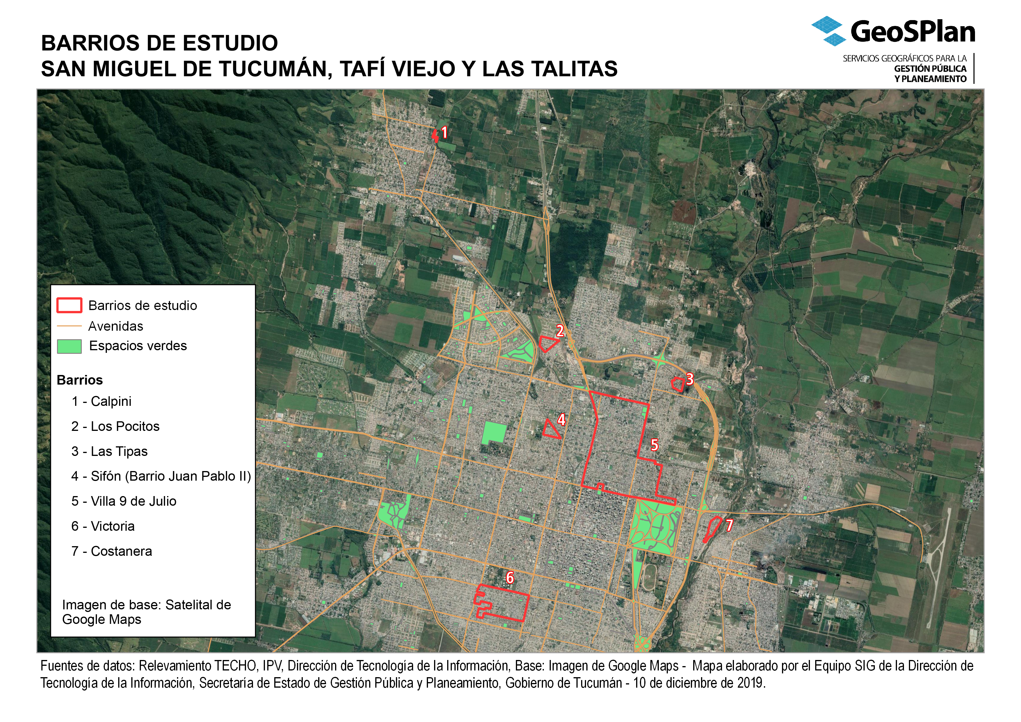 Mapa de la ubicación del Barrio Las Tipas, San Miguel de Tucumán. Estudio ONAT