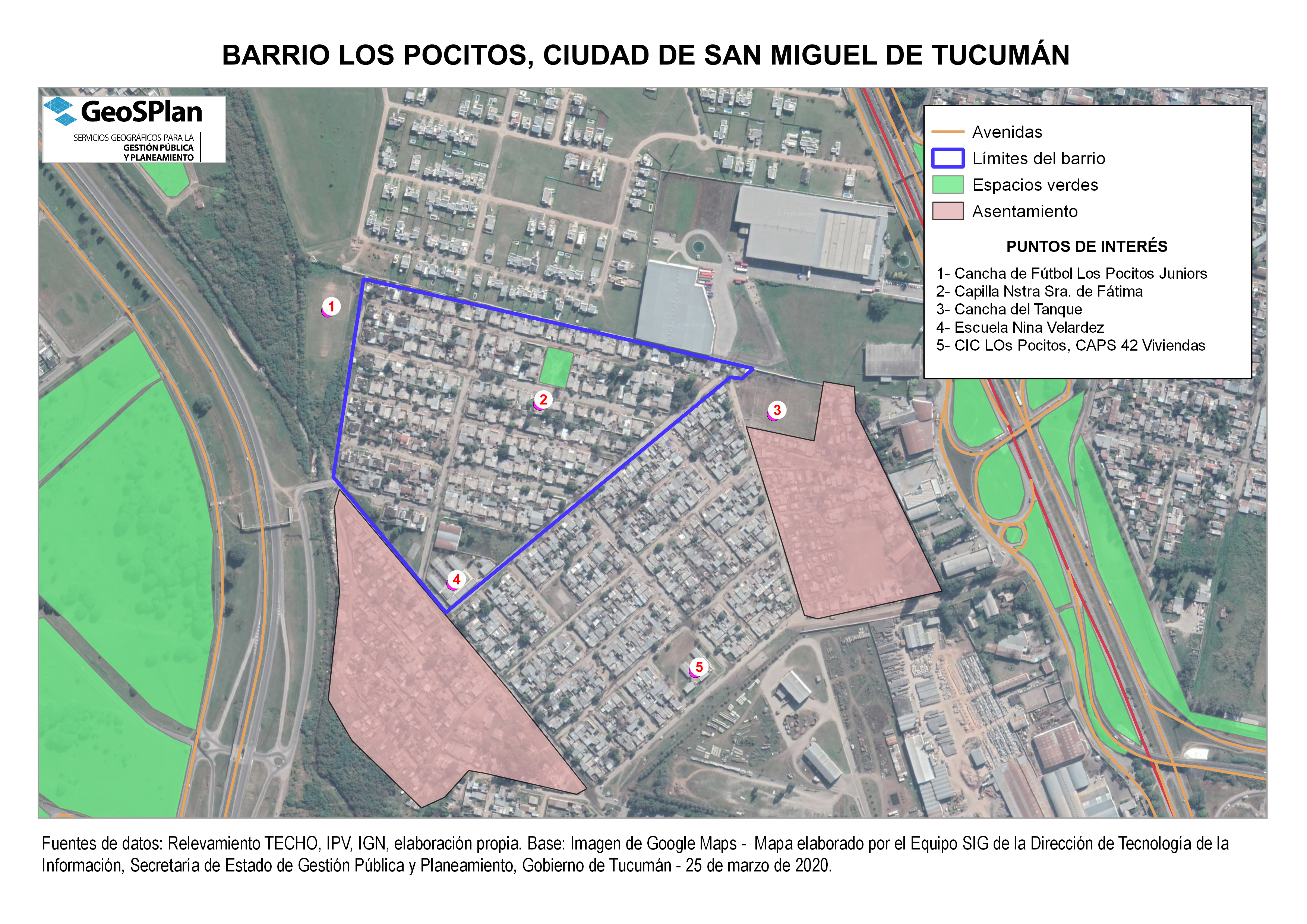 Mapa de la ubicación del Barrio Los Pocitos, San Miguel de Tucumán. Estudio ONAT