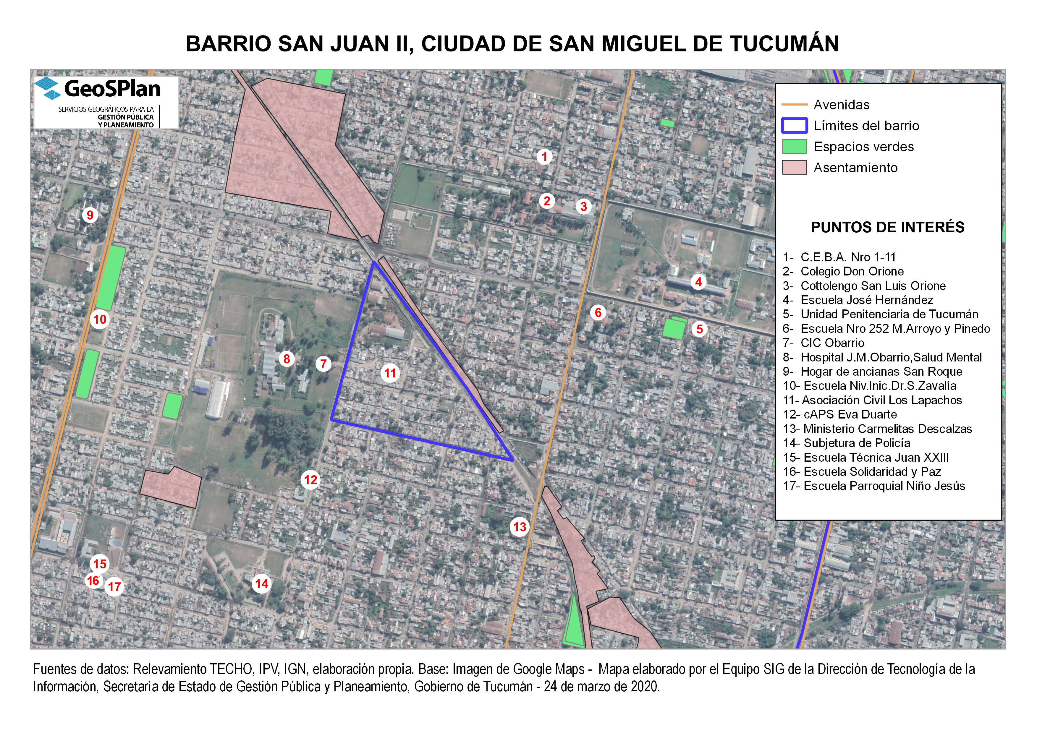 Mapa de la ubicación del Barrio San Juan II, San Miguel de Tucumán. Estudio ONAT